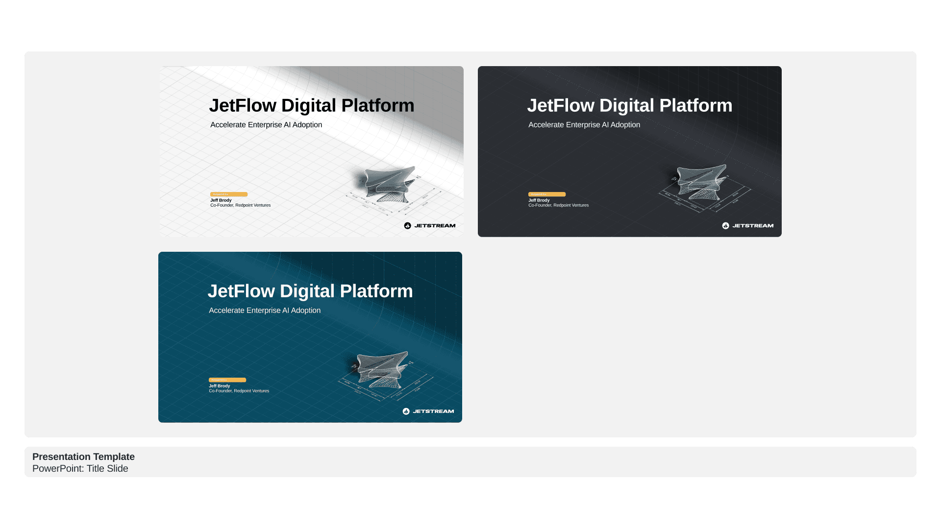 JetStream needed to articulate who they are and how JetFlow fits into the AI stack before a mature product UI existed, and they needed to do it fast. The team was looking for a core logo system, typography and color decisions, practical launch assets (stealth page, social, decks), and an outside perspective on optimizing their early dashboard so it matched the clarity of the story they wanted to tell.